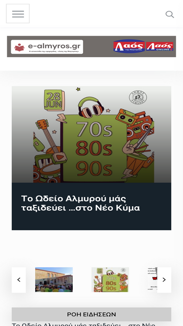 71%Το e-almyros.gr, η ιστοσελίδα της εφημερίδας "Λαός της Μαγνησίας", προσφέρει άμεση τοπική ενημέρωση για Αλμυρό και Μαγνησία: ειδήσεις, εκδηλώσεις, αθλητικά