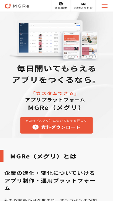 83%MGRe(メグリ)は理想の顧客体験(CX)をつくるアプリマーケティングプラットフォームです。アプリの開発から運用、データの分析、カスタマイズまでワンストップでサポートしています。