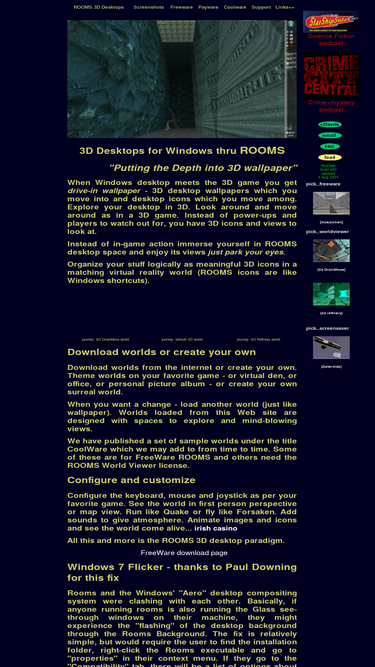 100%3d desktops - wallpapers and desktop icons among which you move (just like a 3d game). organize stuff in a fast, flexible free virtual reality world.