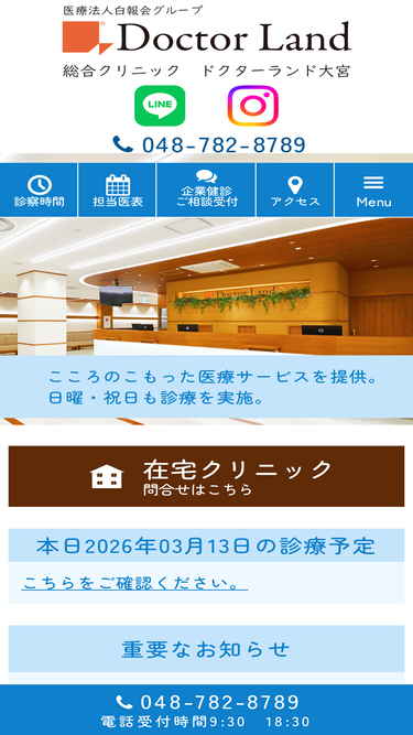 91%さいたま市、大宮の総合クリニック ドクターランド大宮は経験豊富な複数の医師により、内科、整形外科、皮膚科、耳鼻咽喉科などの各診療、在宅医療、健康診断・人間ドック、予防接種に対応。日曜診療、内科は夜8時最終受付の夜間診療も行っております。