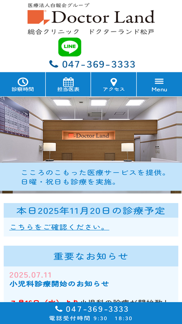 98%新京成線、松戸新田駅徒歩5分のドクターランド松戸へようこそ。当院は土曜・日曜・祝日も年中無休にて、内科、整形外科、皮膚科、眼科の診療を行っております。また地域の皆さまのお役に立てるようリハビリ科、在宅医療、健康診断・人間ドック、予防接種にも力を入れております。