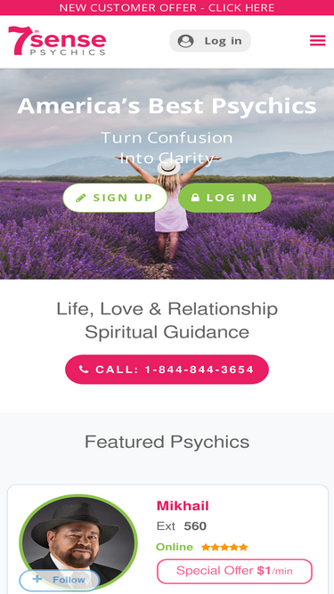 89%"a truly incredible experience." find out why 7th sense is the fastest growing psychic network in america. enlightened guidance at an honest price.