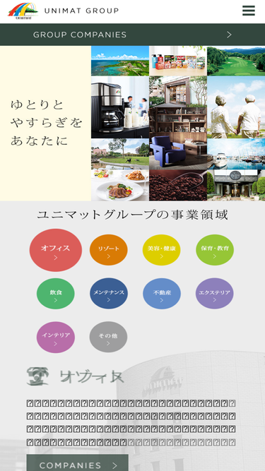 92%ユニマットグループは、ゆとりとやすらぎを提供する総合サービス業集団です。
