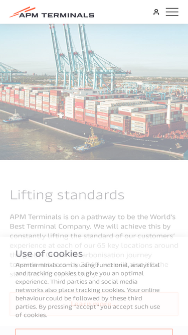 60%apm terminals has been lifting standards for developing and operating ports and container terminals for over half a century. with a unique position as the leading container terminal concession partner for local and national partners, advanced products for our shipping line and landside customers around the world and a commitment to supporting thriving local communities – apm terminals is truly lifting global trade