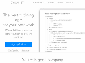 75%dynalist lets you organize your ideas and tasks in simple lists. it's powerful, yet easy to use. try the live demo now, no need to sign up.