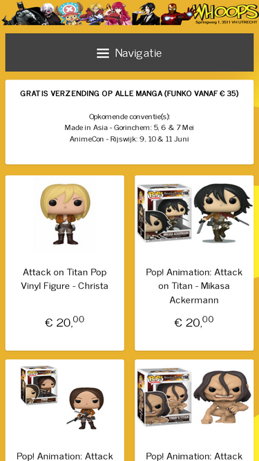 84%GRATIS VERZENDING OP ALLE MANGA (FUNKO VANAF € 35) Ook staan wij met de winkel op de volgende conventie(s): - TomoFair Utrecht: 27 & 28 september 2025 - FACTS Gent: 1 & 2 november 2025