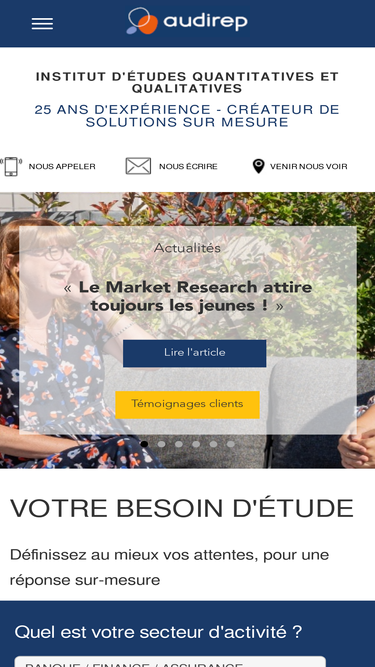 74%audirep est un institut d’études marketing spécialisé dans la satisfaction client depuis 20 ans. découvrez notre expertise : etude de marché, sondage clients, analyse de parcours clients, baromètre de satisfaction, stratégie de fidélisation et de satisfaction…