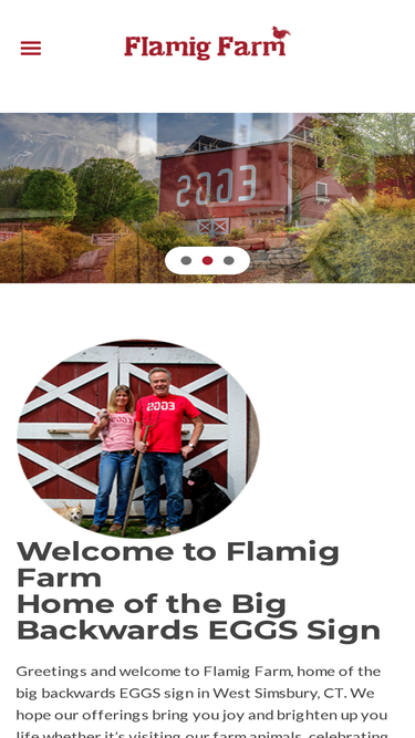 Flamig Farm in West Simsbury, CT is the home of the backward EGGS sign & a place to bring the family to visit the animals, farm store, or have a party.