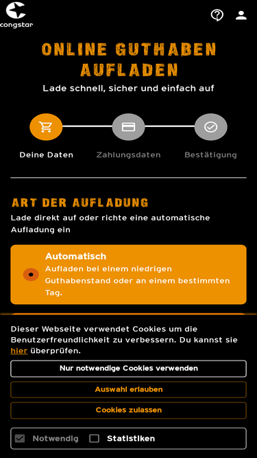 85%Sofort online aufladen. Für dich selbst oder für Andere.