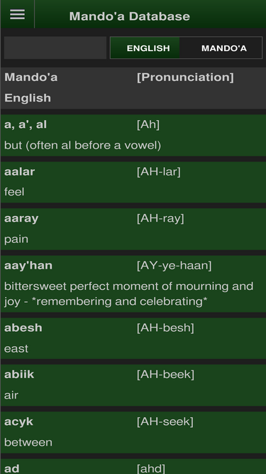 100%mando'a/english dictionary at mandoa.org - dedicated to the preservation and growth of the mando'a language.
