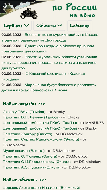 100%Сайт посвящен автотуризму. Разделы: Мои путешествия, Чужие истории, Фотогалерея, Сел и поехал - описание маршрутов в регионах России, Рейтинги от Eeyore© - личные впечатления автопутешественника от объектов и достопримечательностей Карелии, Эстонии, Ленинградской, Тверской, Вологодской, Псковской и других областей