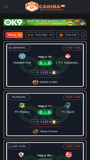 CakhiaTV là một trong những nền tảng phát sóng bóng đá trực tiếp đỉnh nhất. Cakhia TV xem trực tiếp bóng đá trực tuyến hôm nay miễn phí full HD.