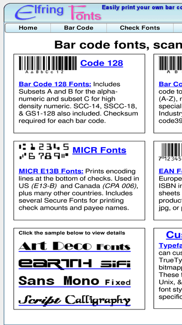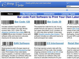 barcode font software for printing labels and graphics, micr / e13b check writing fonts, custom typeface design, and unique decorative fonts.