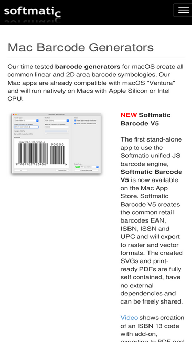 84%softmatic barcode software and bulk barcode generators for mac and windows 10. extensive know-how and faq section on all things barcode.