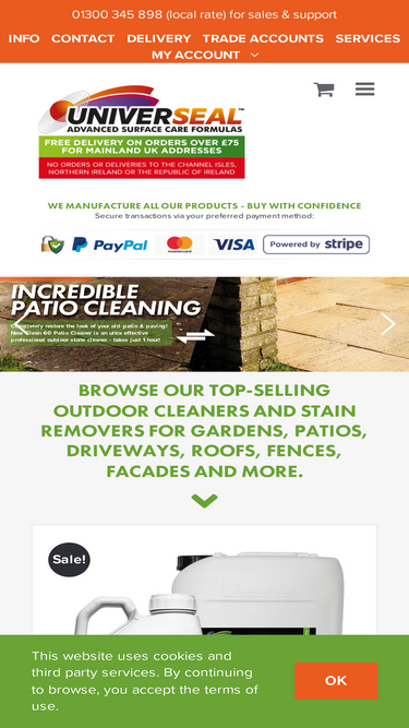 87%Universeal are a leading UK manufacturer of high quality surface care formulas for outdoors spaces, such as patios, block paving, flagstones and more