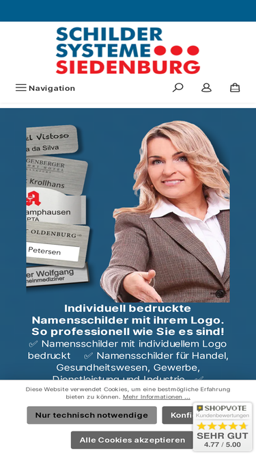 83%Namensschilder für (fast) jede Art von Unternehmen. Handel, Dienstleistung oder Handwerk - wir haben das passende Namensschild in unserer Fertigung, sei es mit Magnet oder Nadel, aus Kunststoff oder Metall.