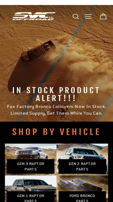 98%SVC Offroad manufactures and sells custom off-road suspension, off-road front and rear bumpers, and other off-road aftermarket performance parts for the Gen 1, Gen 2 and Gen 3 Ford Raptor, Superduty, Bronco and Ranger. If you're looking to take your Raptor or Ranger to the next level, contact SVC OFFROAD .