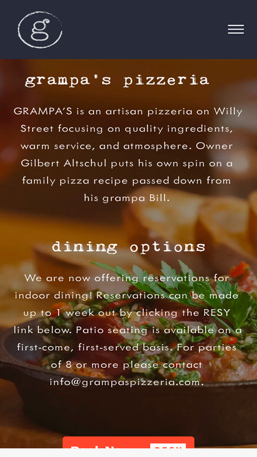 84%GRAMPA’S is an artisan pizzeria on Willy Street focusing on quality ingredients, warm service, and atmosphere. Owner Gilbert Altschul puts his own spin on a family pizza recipe passed down from his grampa Bill.