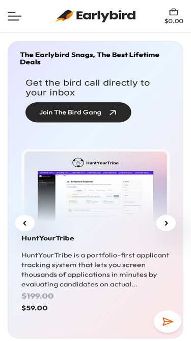 74%To be considered for launching a deal on EarlyBird.soPlease submit your product.