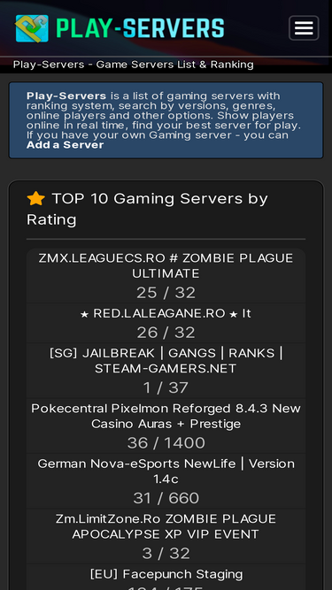 80%play-servers is a list of gaming servers with ranking system, search by versions, genres, and more options. show players online in real time, find your best server for play.