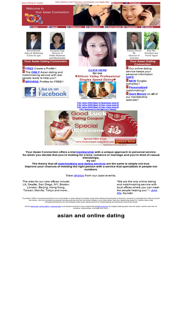 100%your asian connection, inc. is a personals and online dating, speed-dating, and introductions service for men of any race seeking to establish a relationship with asian women.