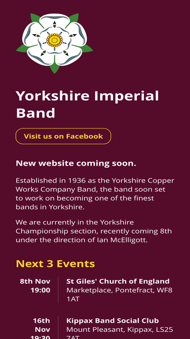 The Yorkshire Imperial Band is a brass band located in wakefield, yorkshire, available for concerts across the UK either as a full 25 piece brass band or a smaller ensemble. Available for concerts, charity fundraisers, private functions, weddings and marches