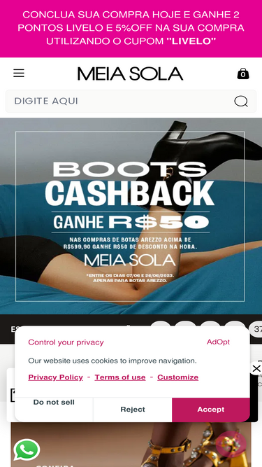 80%A MEIA SOLA é a maior marca de moda premium do Ceará. Possui uma curadoria exclusiva das melhores multimarcas, Schutz, Arezzo, Vicenza até 10x s/juros