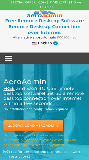 81%aeroadmin - zero configuration free for business and home remote desktop software. start a remote desktop connection instantly.