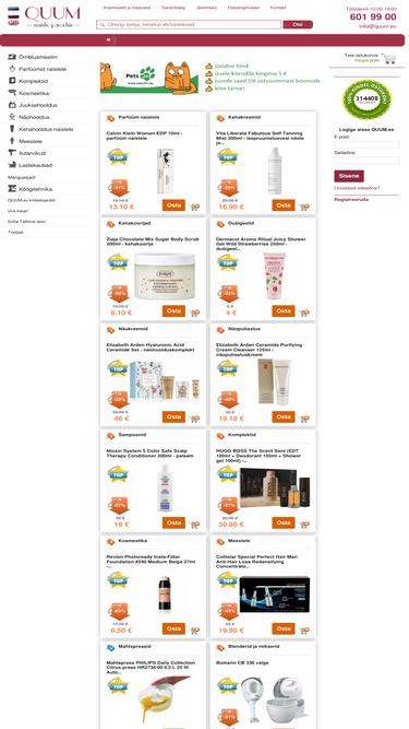 85%esileht originaal parfüümid ja kosmeetika. olme- ja köögitehnika. suur valik erinevaid brände. kohaletoimetamine üle euroopa