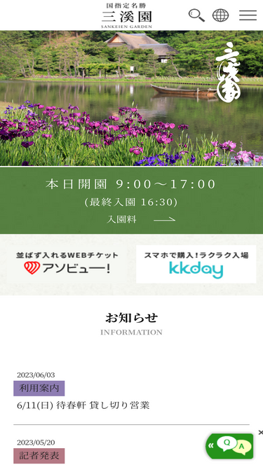 76%三溪園は横浜市中区本牧三之谷にあり、実業家で茶人の原三溪によって作られた日本庭園です。国の重要文化財建造物10棟、横浜市指定有形文化財建造物3棟を含め、17棟の建築物を有し、広大な敷地の起伏を生かした庭園との調和がはかられています。