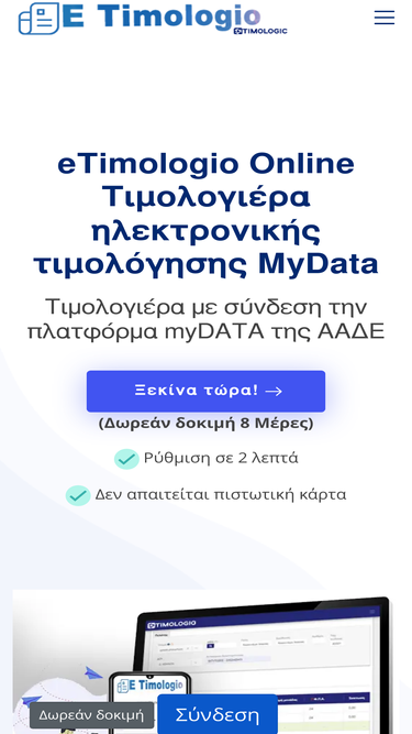 Μπορείτε να κάνετε στο E Timologio είσοδος ή εγγραφή από το λινκ και να μπείτε στην εφαρμογή ηλεκτρονικής τιμολόγησης myDATA