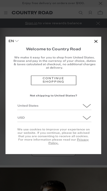 100%shop country road's entire lifestyle offering including: woman, man, child and home.
