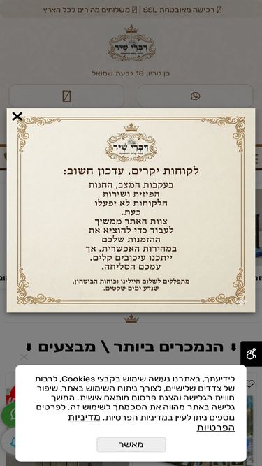 96%מדיניות משלוחים והחזרות מדיניות משלוחים זמני אספקה. זמן אספקת משלוח עד הבית הנו בין 3-7 ימי עסקים לכל רחבי הארץ. זמן אספקת משלוח לנקודת איסוף / איסוף מסניפי הרשת הנו עד 14 ימי עסקים. זמן אספקת משלוח המופיע לאחר ביצוע העסקה הנו משוער. בזמנים חריגים כגון יריד החסידות וחודש הספר יתכן עיכוב בזמן האספקה עד […]