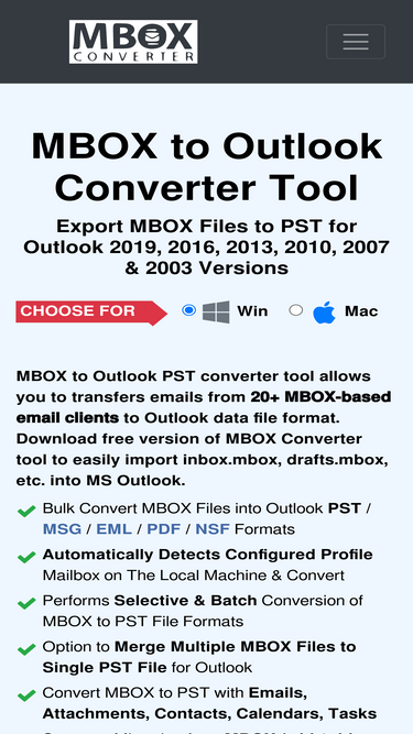 100%mbox to outlook converter tool to convert mbox files to pst format. verified mbox converter for exporting mbox to pst and other formats. use free mbox to pst converter version and test working.