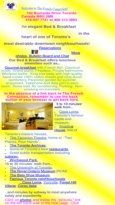 91%the french connection - elegant bed & breakfast with the finest amenities such as whirlpool tubs, king size beds at casa loma, near wychwood park, near forest hill, near the annex, downtown toronto canada.
