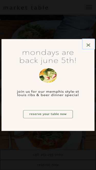 89%Contact us at Market Table for reservations, questions, media inquiries, or other inquiries today. Market Table is an American Restaurant located in NYC.