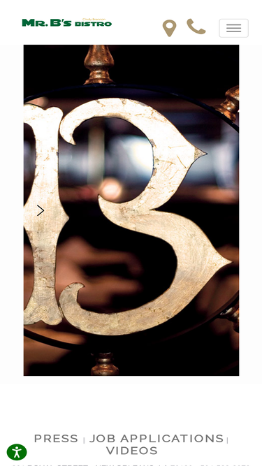 64%mr. b's bistro, a new orleans restaurant famous for its creole cuisine with a focus on fresh regional products, is located in the heart of the french quarter at the intersection of royal street and iberville. this corner is a new orleans landmark and celebrated food corner.