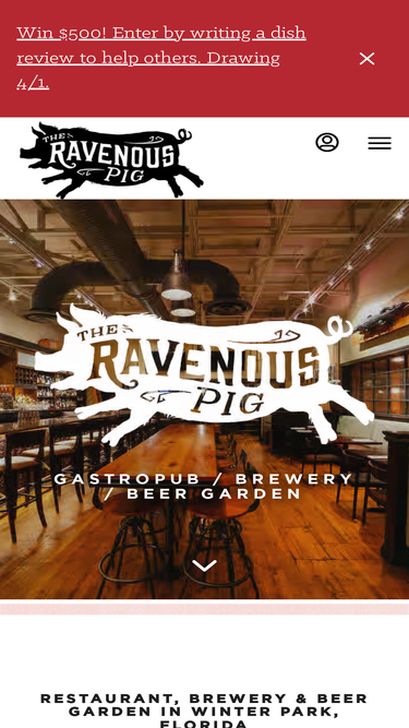 73%the ravenous pig in winter park, fl. stylish gastropub serving inventive new american fare, beers brewed on-site & handcrafted cocktails.