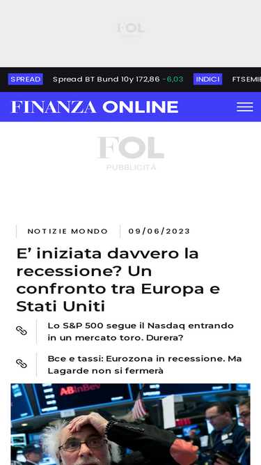 L'informazione economica e finanziaria: approfondimenti e notizie su borsa, finanza, economia, investimenti e mercati. Leggi gli articoli e segui le dirette video.