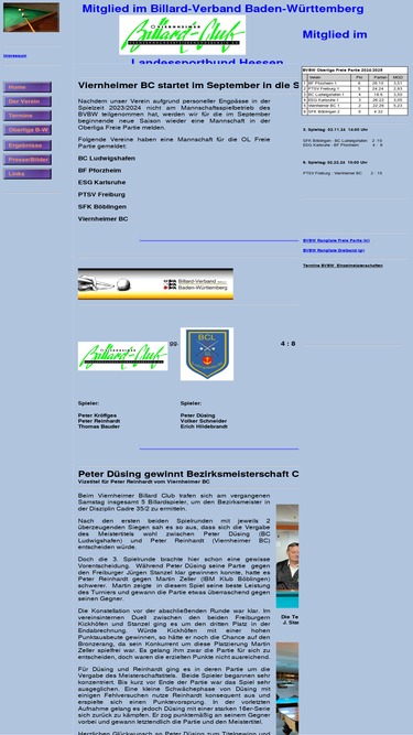 100%hier findet man aktuelle news, infos, termine und ergebnisse von viernheim einzigem carambol - billard verein. viernheimer bc - mehr billard geht nicht !