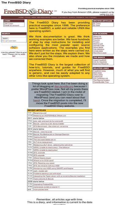 95%the freebsd diary is a collection of how-to guides for the freebsd operating system. provding practical examples since 1998.