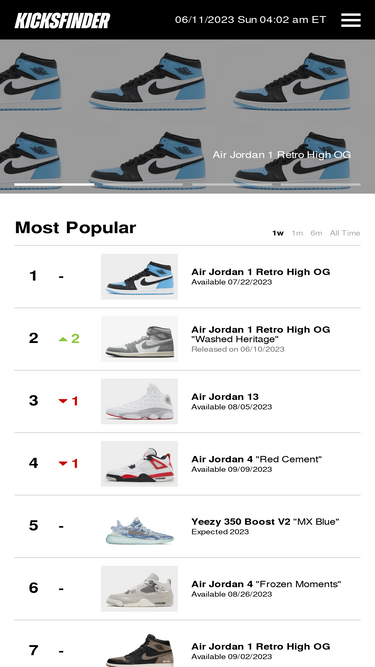 83%Kicksfinder is an online database of the most popular sneakers from Nike, Jordan, Yeezy, adidas, and other footwear brands. Find a full list retailers as well as release dates, prices, and more.