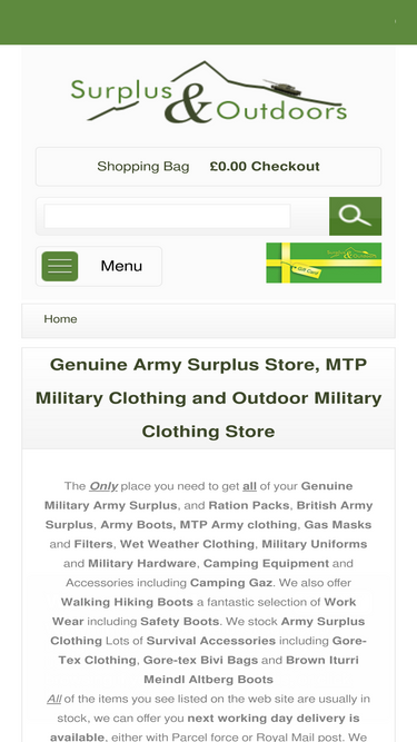 80%Genuine Army Surplus Prepper Store that sells Military and MTP Cadet Uniforms then this Prepper shop and Outdoor Military Clothing store sells alot of Wet Weather Clothing and Genuine Army Surplus, Cap Badges, Camping and Military Equipment All In stock Order online or call into store to purchase