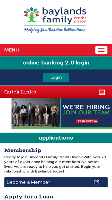 87%baylands family credit union is committed to serving the financial needs of our membership. borrow, save, manage and teach for your financial goals with baylands fcu. membership, financial services and more are open to individuals in any of the following virginia counties: james city, new kent, king william, king & queen, middlesex, essex, gloucester and mathews. call 888-843-2520.