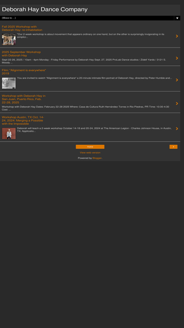 100%home web page for the famous american post-modern dancer deborah hay, austin, texas, usa.