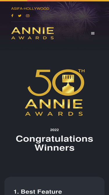 47%Honoring excellence in the field of animation, the 53rd Annual Annie Awards will be presented in 37 categories including Animated Feature, Animated Feature-Independent, Television/Media Production(s), Sponsored Production, Short Subject and Student Film, as well as the Achievement and Honorary awards.