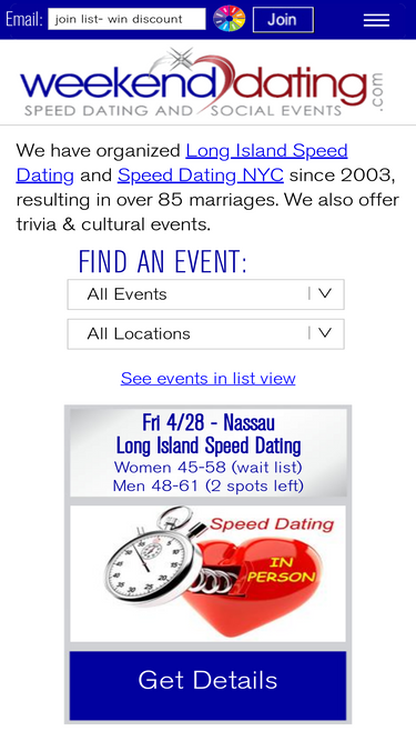 85%Speed Dating, Singles Events and Cultural activities in NYC and Long Island. We have 85 married couples.