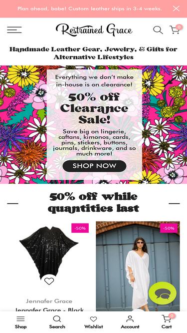 82%Restrained Grace creates hand-crafted, high-quality, high femme bondage gear, jewelry, and gifts for the kinky, queer, and polyamorous. Though we believe in shame free sexual expression, we design on a spectrum from discreet to living loud and proud. Our bondage gear is nickel free, and made to measure at ANY size.