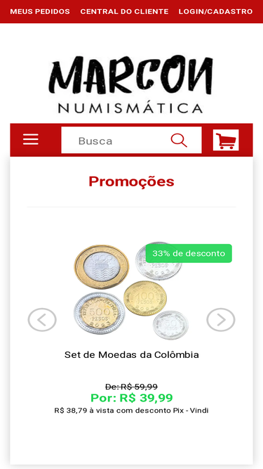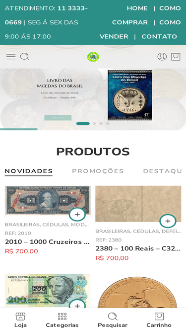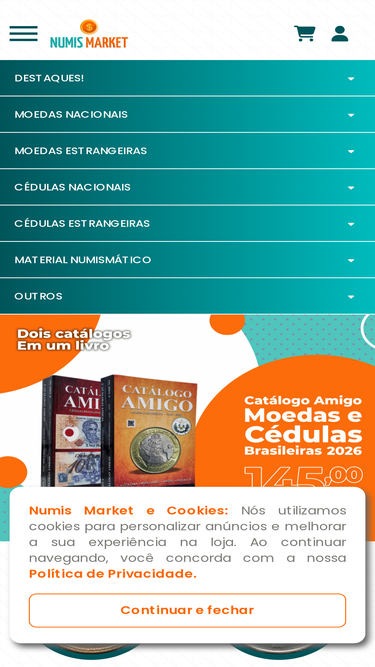 Numis Market - Loja Numismática Online - Aqui você encontra: Moedas e Cédulas Antigas Nacionais e Estrangeiras - Moedas de Prata - Barras de Prata Pura Certificadas - Prata Pura Granulada - Materiais Numismáticos - Catálogo de Moedas - Catálogo de Cédulas - Coin Holder - Álbuns e Pastas e Muito Mais!