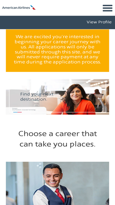 Apply online for Jobs at American Airlines - Information Technology, Finance and Accounting, Sales & Marketing, Jobs at the Airport, Flight Attendant, Pilots, Customer Service, Technical Operations & Maintenance, MBA Leadership Development Program